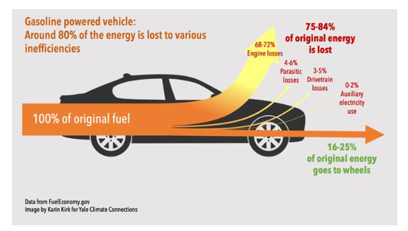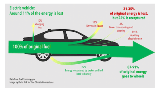 In simple words: Electric vehicles waste less and use more of what they’re given.