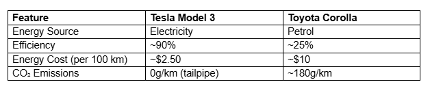 Electric vehicles convert about 85%–90% of their battery energy into movement. That’s more than 3x better than petrol cars.