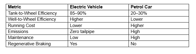 Real-World Electric Vehicle vs Petrol Efficiency Comparison
