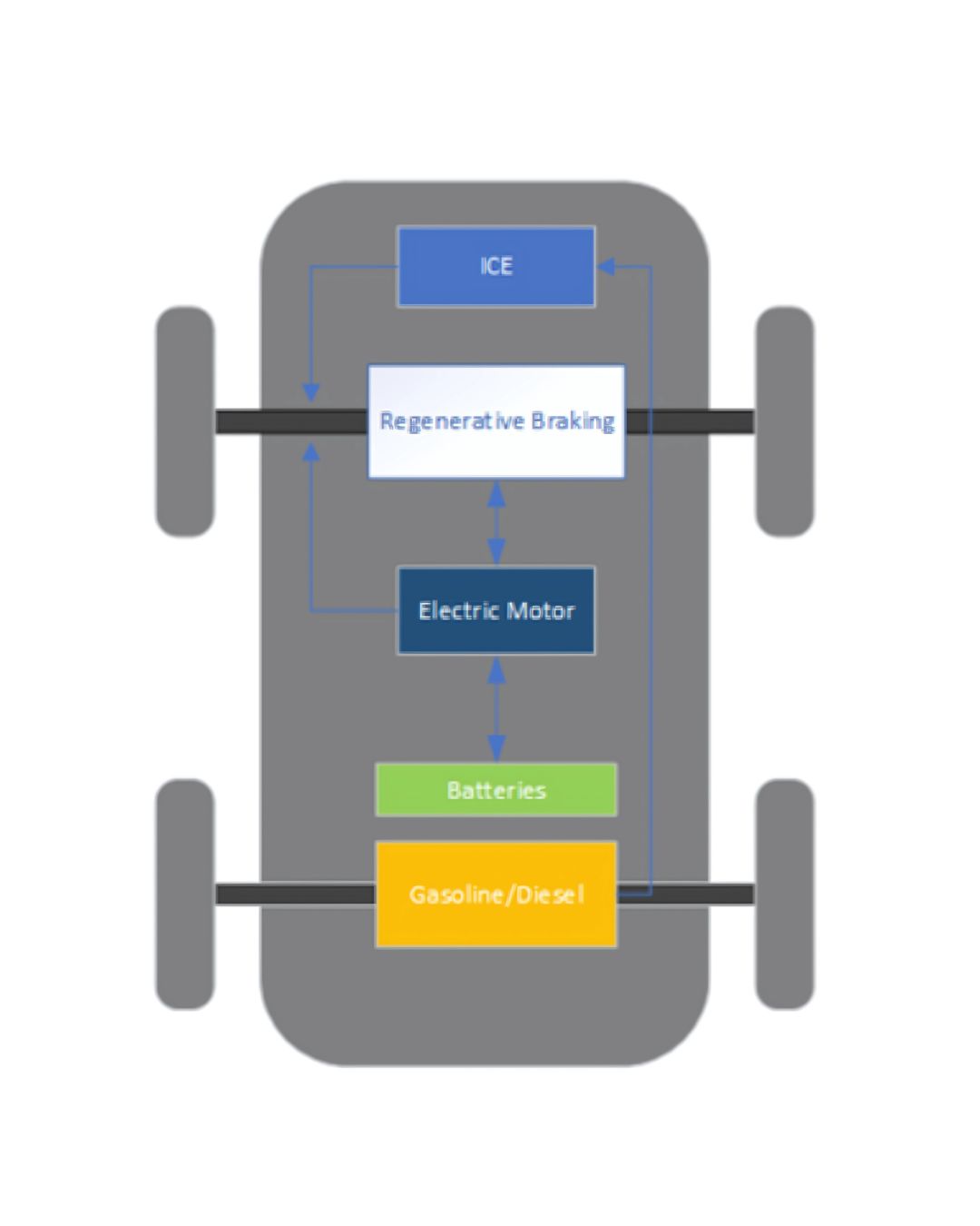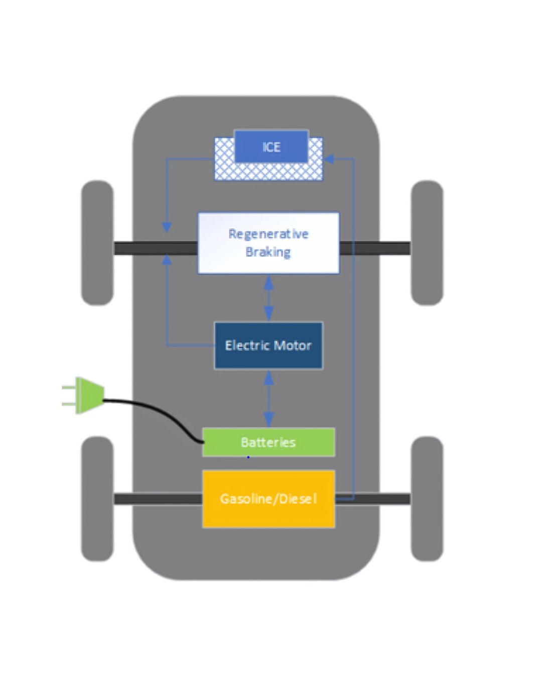 Basic Structure of HEV (Source: https://www.researchgate.net/figure/Basic-structure-of-different-EV-types-a-HEV-b-PHEV-c-PEV_fig2_370115857)
